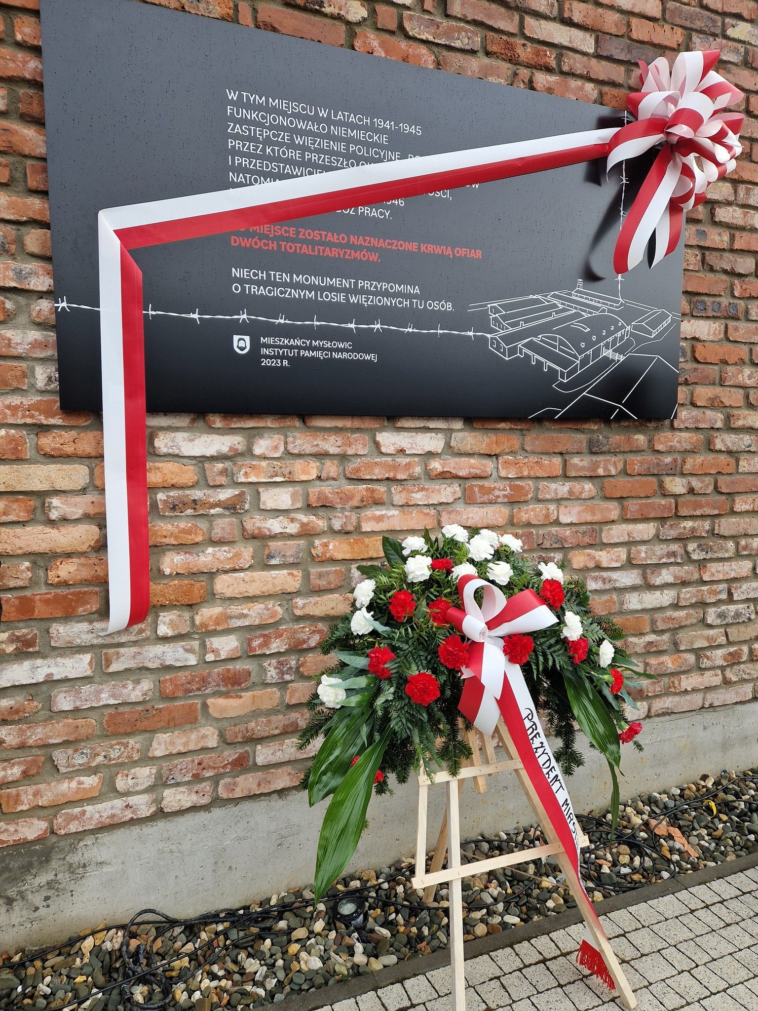 Tablicę umieszczono na murze imitującym fragment obiektu, w którym w latach…