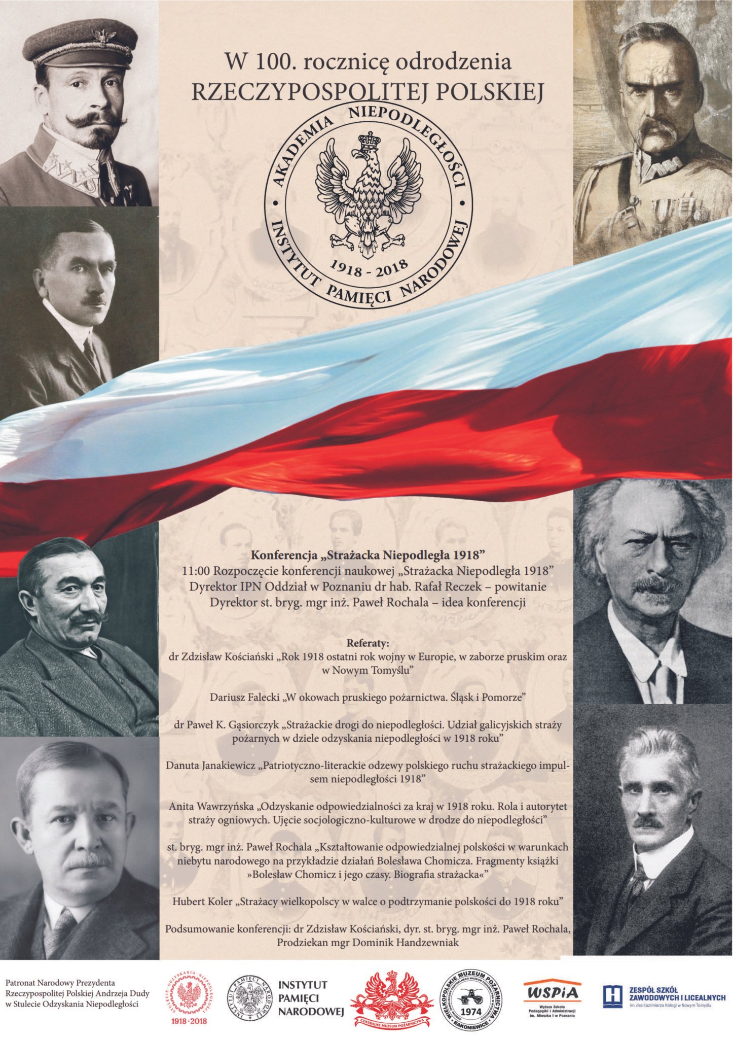 Już 3 stycznia 2019 r. o godz. 11.00 odbędzie się w Nowym Tomyślu (woj. wielkopolskie) konferencja naukowa pt. „Strażacka Niepodległa 1918”. Współorganizatorem konferencji jest Instytut Pamięci Narodowej w Poznaniu. Gospodarzem wydarzenia będzie Wyższa Szkoła Pedagogiki i Administracji w Nowym Tomyślu. Konferencji towarzyszyć będzie wystawa „Strażacka…