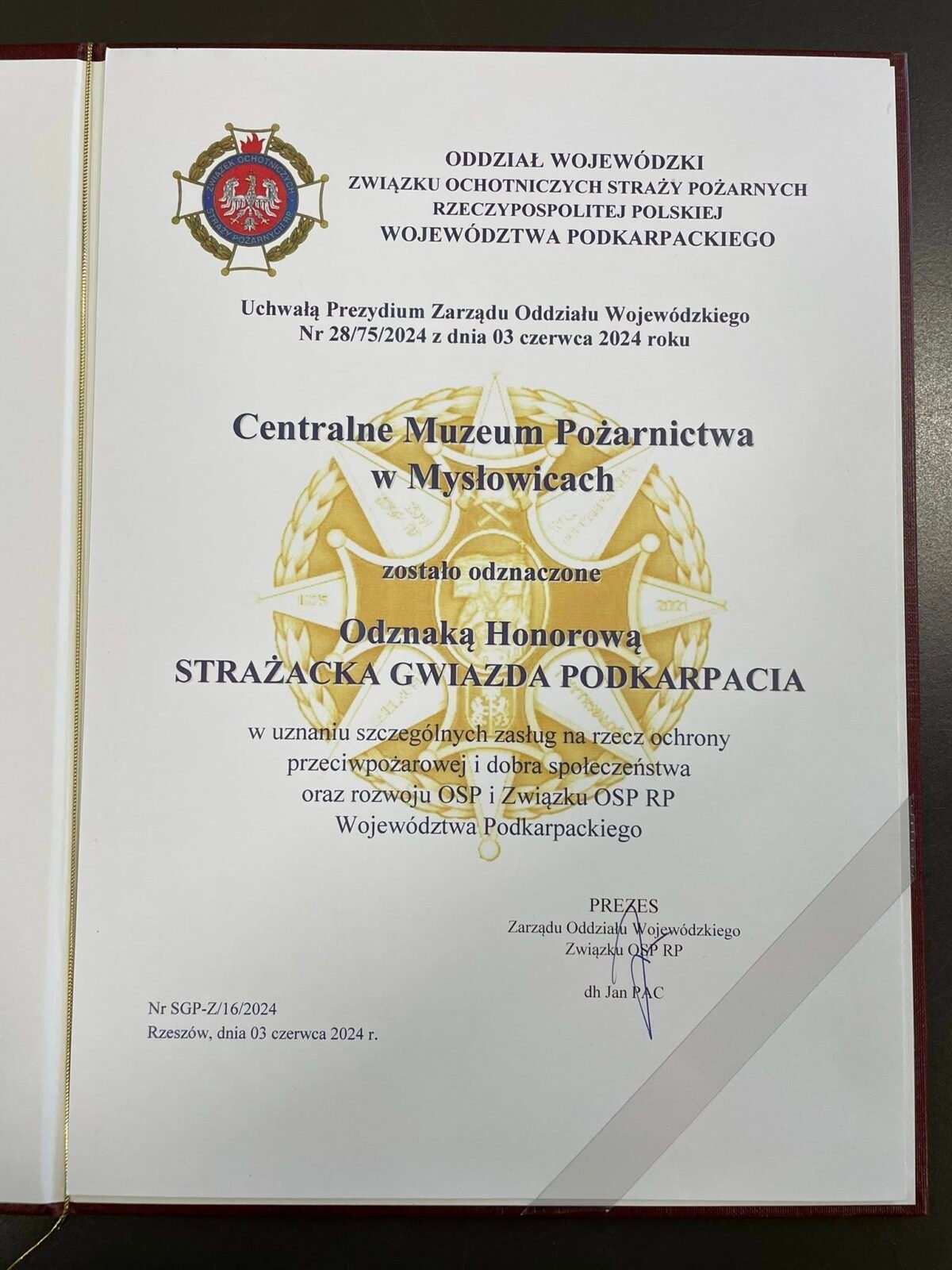 Zostaliśmy Odznaczeni Honorową Strażacką Gwiazdą Podkarpacia.
