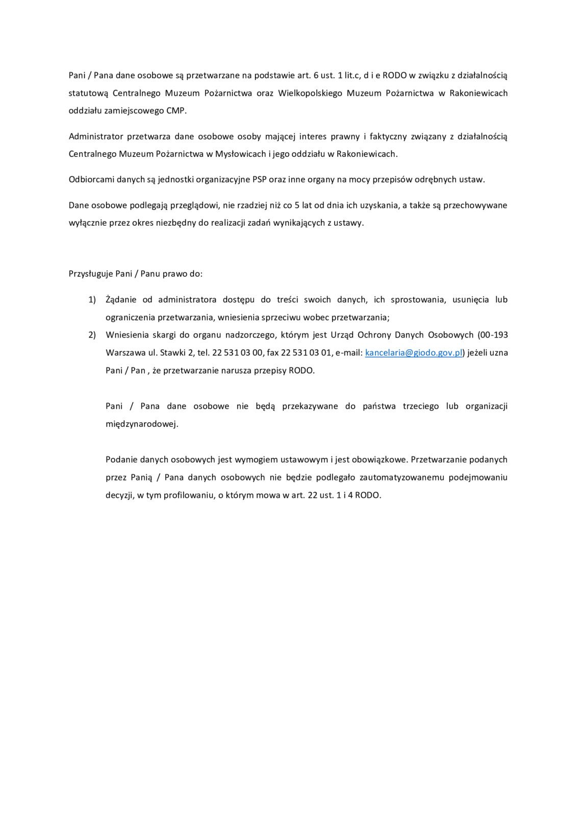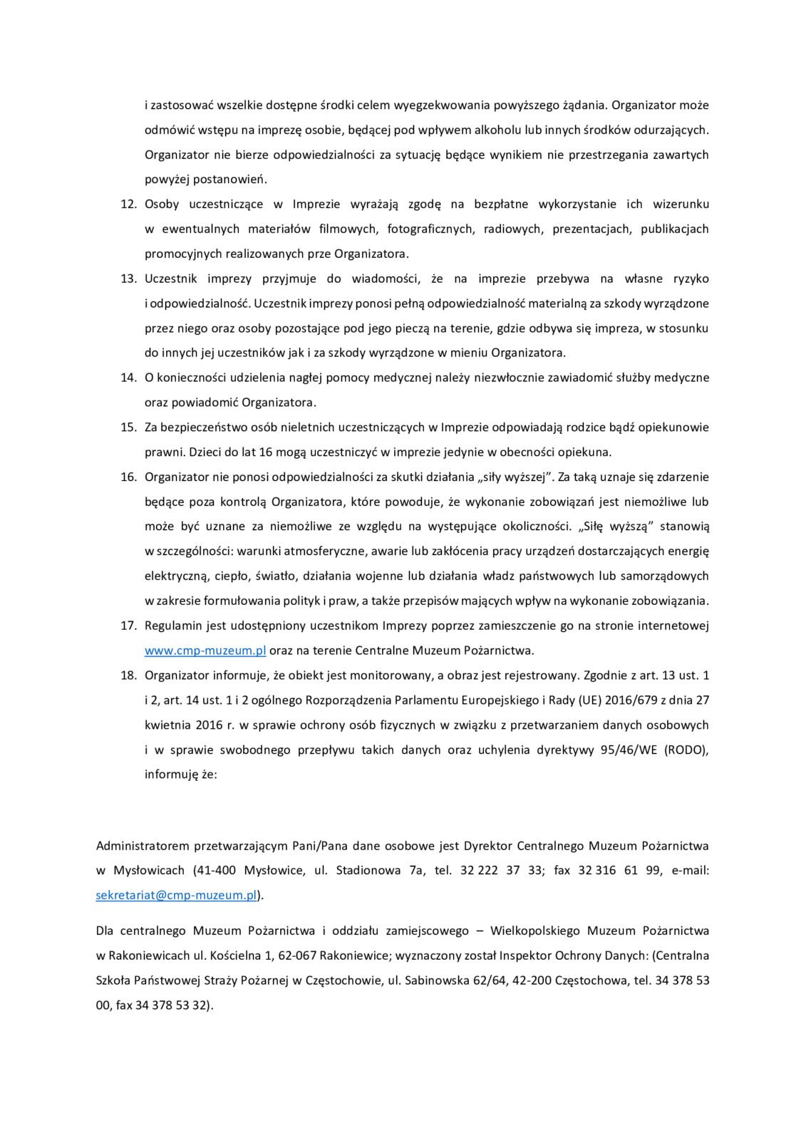 •  Regulamin monitoringu wizyjnego