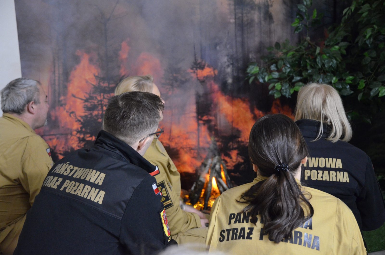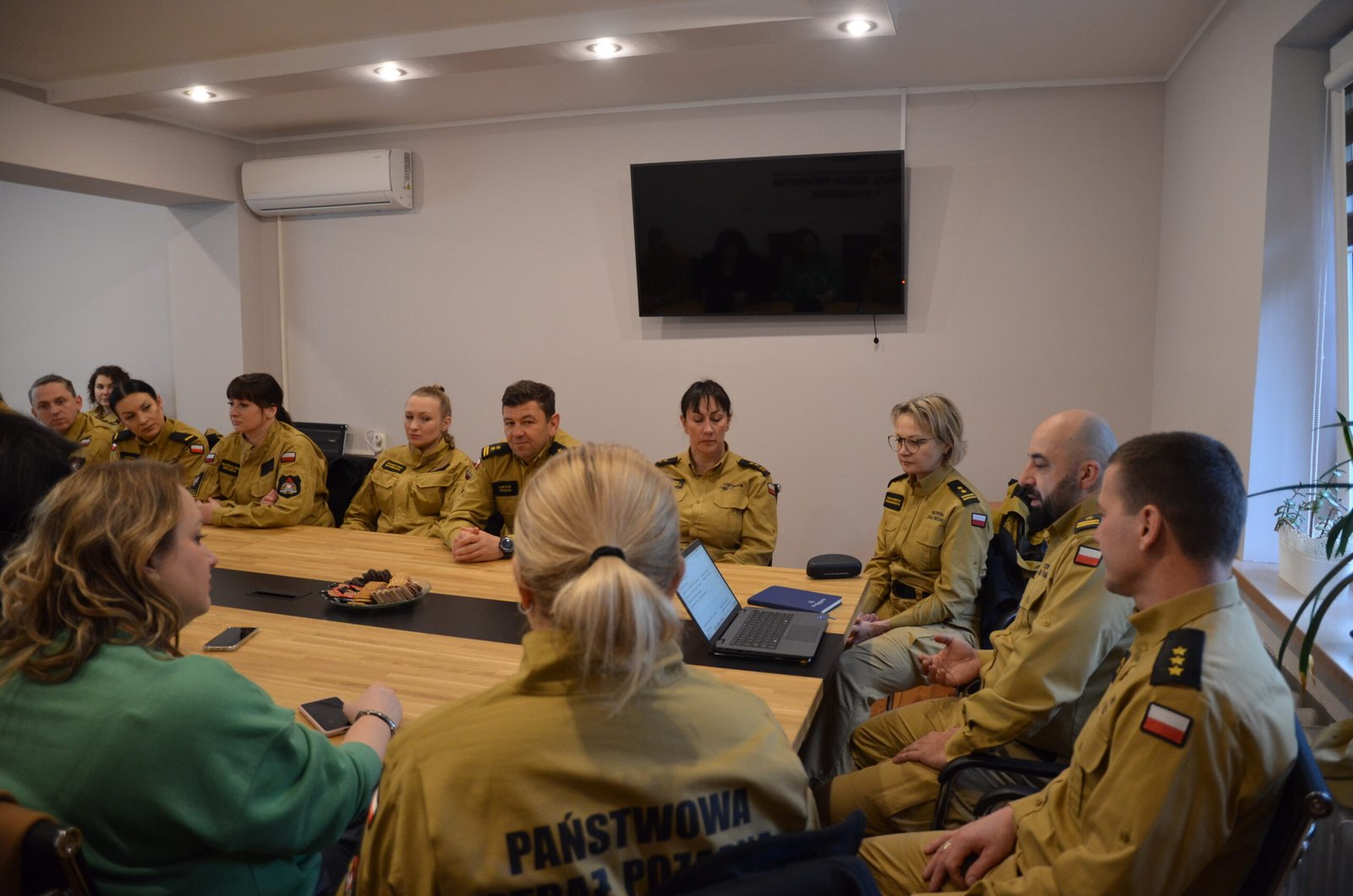 Grupa funkcjonariuszy pożarnictwa uczestnicząca w spotkaniu